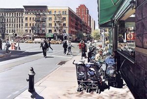 Si… este es un cuadro hiperrealista… ¿a que parece una fotografía y no una pintura?. Tiene mucho mérito pintar esto, que duda cabe, y se requiere gran técnica para hacerlo, pero nos deja indiferentes… a mi por lo menos me pasa. ¿Que es lo que ocurre?, ¿porqué no nos hace sertirnos identificados con ese paisaje?, pues bien fácil… porque si viesemos esa escena al natural jamás veríamos idéntico detalle en edificios y demás elementos al mismo tiempo…