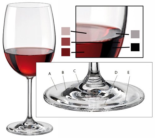Fíjate en la imagen ampliada de la base de la copa la cantidad de formas y tonos distintos que podemos ver. Es un auténtico puzzle. El tono (color) A es más claro que el B y éste que el C… El gris D es más cálido que los anteriores y el E es como más azulado que el resto…