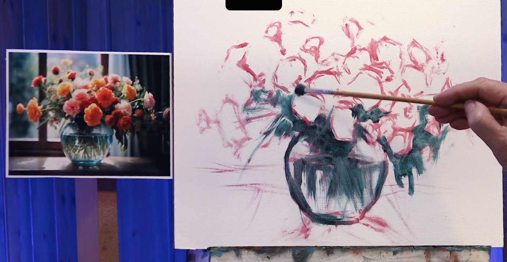 Aprende a pintar un bodegón floral al óleo con una pincelada suelta y luminosa, comprendiendo cómo organizar el color y la luz desde las primeras manchas.
